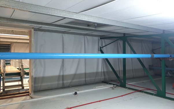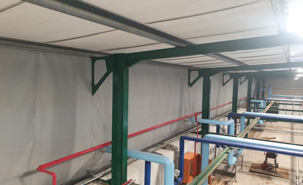 passive fire protection systems made from fire-resistant fabric. They deploy or remain in place to block fire and smoke from spreading through openings like doorways, lobbies, staircases, or atriums.